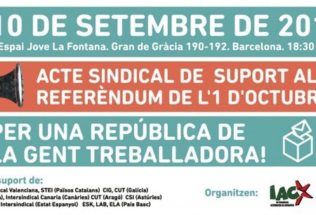 Sindicats d’arreu de l’Estat donaran suport al Referèndum