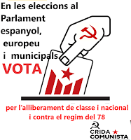 Afirmem que cal afrontar de manera activa i conscient les eleccions, en tots i cadascun dels àmbits (generals, europees i municipals), i convidem la gent a que es faci sentir a les urnes rebutjant les polítiques reaccionàries dels grans partits del règim i donant suport a aquelles opcions favorables a l’alliberament de classe i nacional que defensin els plantejaments més radicals en cada cas.